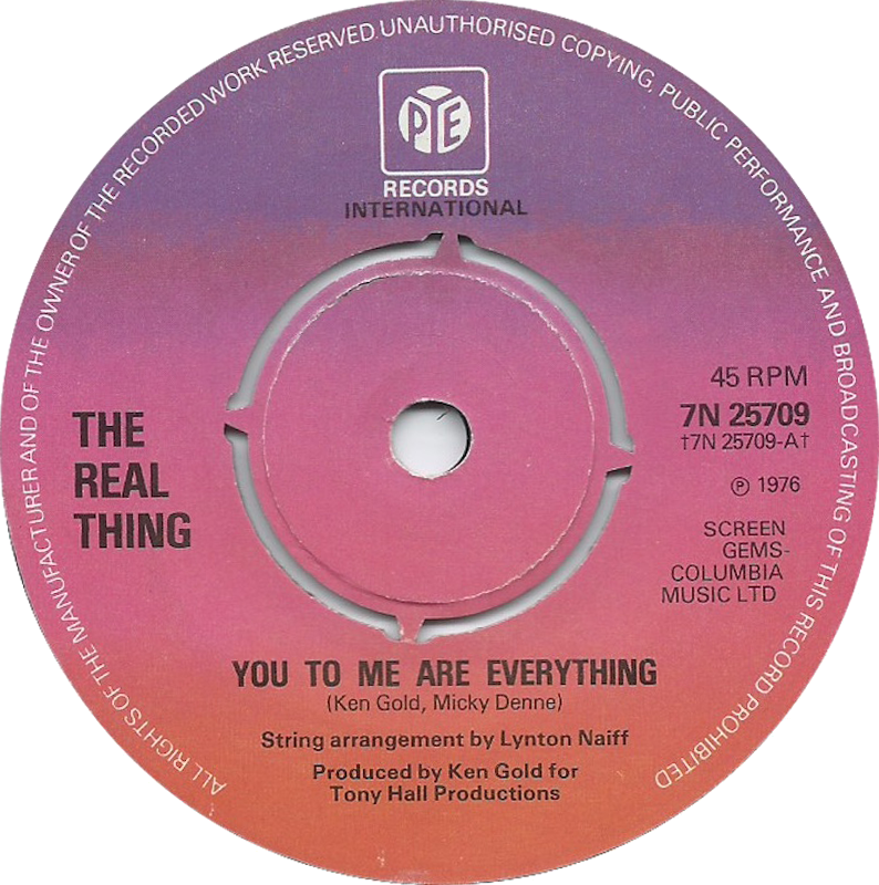 You To Me Are EverythingYou To Me Are EverythingSong by British soul group the Real Thing released as a single in 1976. Written by Ken Gold and Michael Denne. Spent 3 weeks at number one in the UK charts in 1976.
