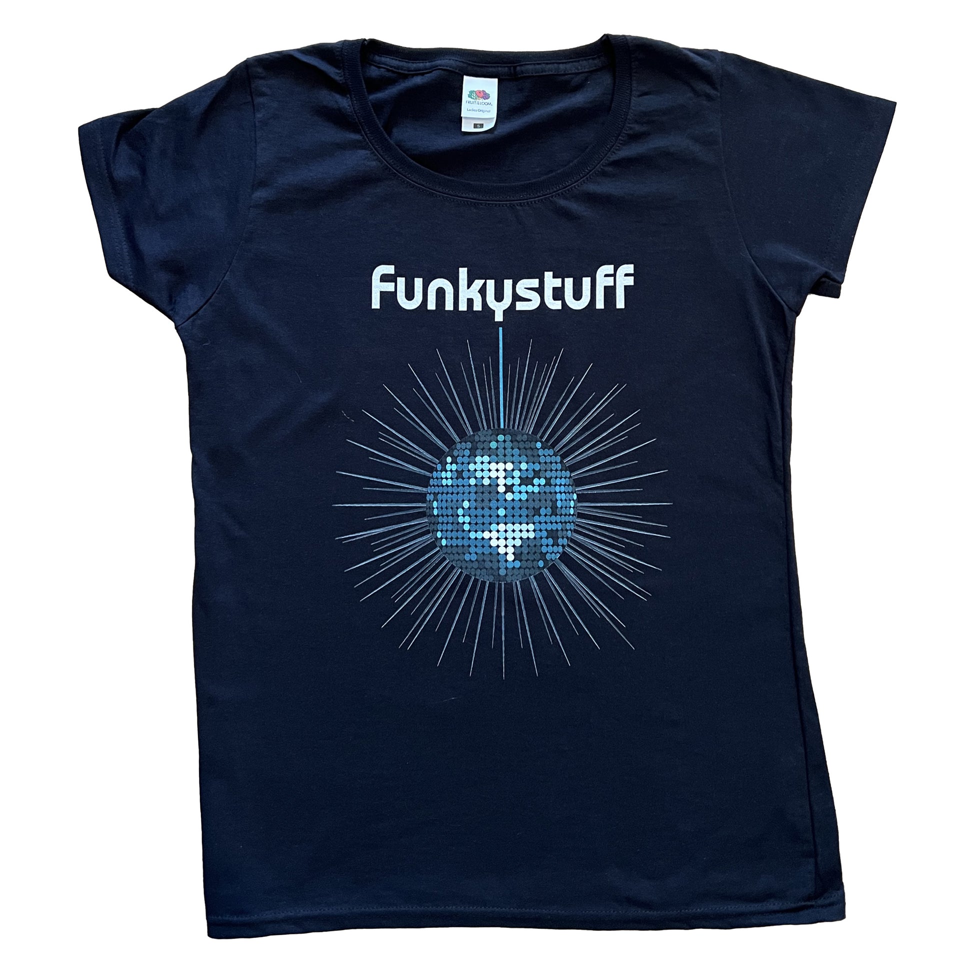 This outstanding value original T-shirt incorporates the Funkystuff logo and classic mirrorball. The T-shirt has a fine knit gauge which ensures a smooth surface, helping to create a clean crisp logo print. The taped neck and twin needle stitching ensures that the stitching is neatly covered whilst remaining strong and durable. Strut your funkystuff for a great night out or the disco night in.